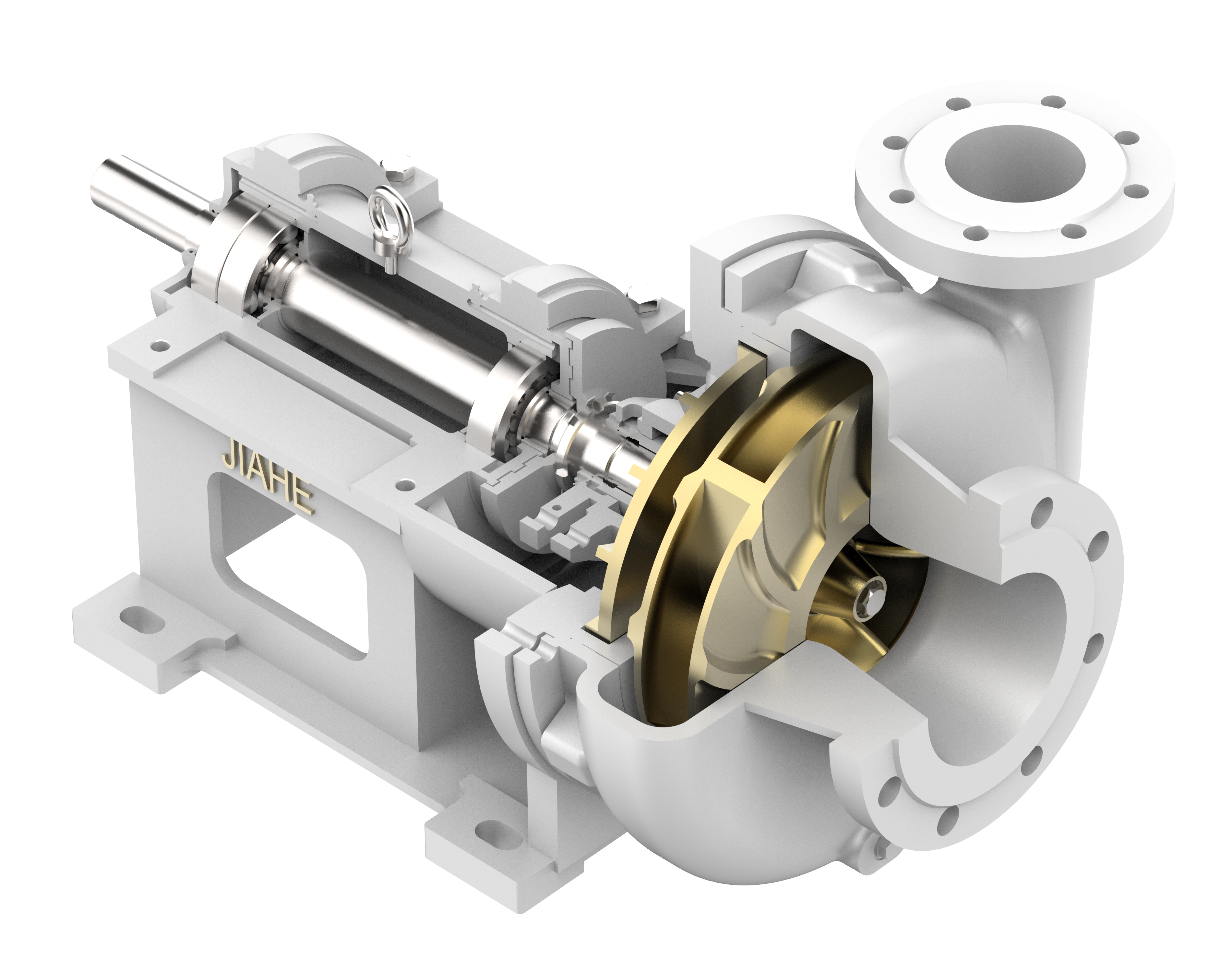 JHBB/JHBD泵(BB2)為兩級、徑向剖分兩端支承離心泵。符合API610-11th標準。JHBB為首級單吸,JHBD為首級雙吸。進出口法蘭尺寸滿足ANSI或ISO標準。密封腔的設計符合ISO21...